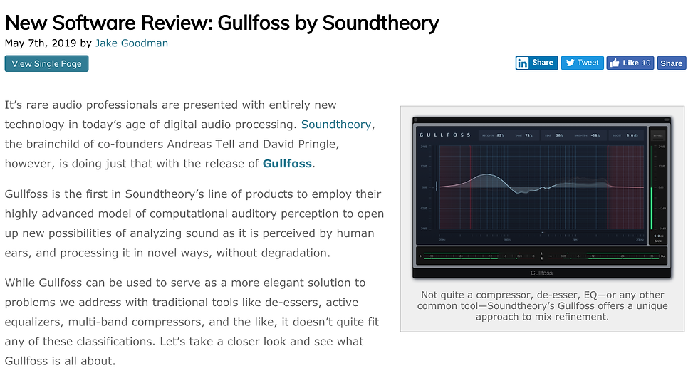 Jake Goodman finds: "This plugin really has enabled me to solve the same old problems by coming at them from a new angle. There is no tool on the market that can manipulate elements the way Gullfoss can. I was even able to bring out a harmony in a background vocal stem simply using Recover and Bias, even though I didn’t have the individual tracks. Additionally, in its advertised use as a mastering plugin I was blown away. Gullfoss gives a final polish that when stripped leaves you wanting more. Once you hear the effect, you feel like something is missing if you bypass it; the sound is suddenly less firm and generally less “finished.” Gullfoss can both expose problems you may have not even noticed, as well as address them in a musical and non-invasive manner. This makes it even a powerful mix diagnostic tool, letting you know what areas need to be addressed."